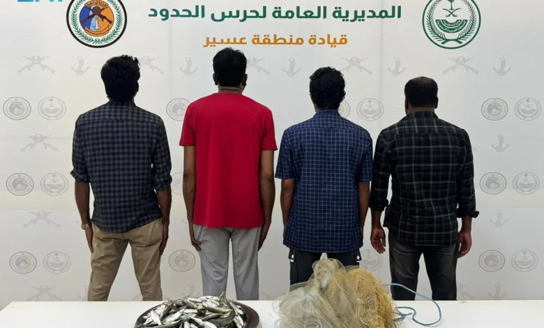 ضبطت الدوريات الساحلية لحرس الحدود في القحمة بمنطقة عسير 4 مقيمين من الجنسية الهندية مخالفين للائحة الأمن والسلامة لمزاولي الأنشطة البحرية في المناطق البحرية للمملكة العربية السعودية، وذلك لممارستهم الصيد دون تصريح، وبحوزتهم أسماك مصيدة، واتُخذت الإجراءات النظامية بحقهم بالتنسيق مع الجهات المختصة.