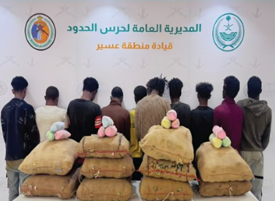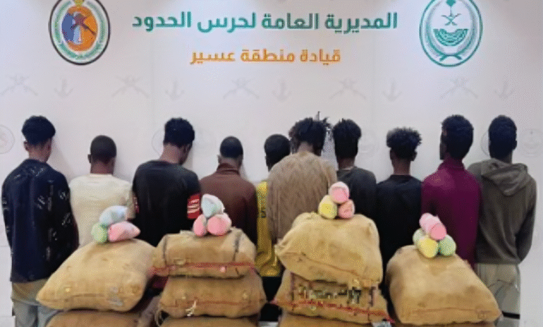عسير: حرس الحدود يقبض على 10 إثيوبيين لتهريبهم 150 كيلوجرامًا من القات المخدر