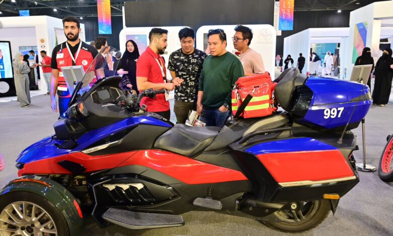 آليات وحدة الاستجابة السريعة، ودراجة الاستجابة النارية “السبايدر”، والدراجات الكهربائية، والسكوتر الكهربائي، ومركبة “عبيه” للتدخل السريع، وذلك بهدف تعريف الزوار بقدرات الهيئة في الوصول السريع لمواقع الحالات الطارئة.