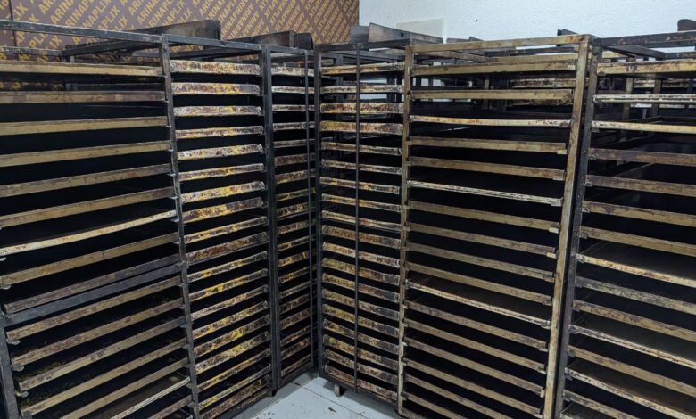 وأوضح مدير عام إدارة رصد ومعالجة الظواهر السلبية، ياسر بن سراج بخش، أن الجولة الميدانية كشفت عن مخبز مغلق بشكل دائم، وعند مباشرة الموقع جرى ضبط كميات من المخبوزات قدرت بنحو 10 أطنان جاهزة للتوزيع، وسط تدنٍ ملحوظ في مستوى النظافة، وانتشار الحشرات، وسوء في التخزين، إلى جانب وجود دفاتر غير نظامية لتسجيل الحسابات.