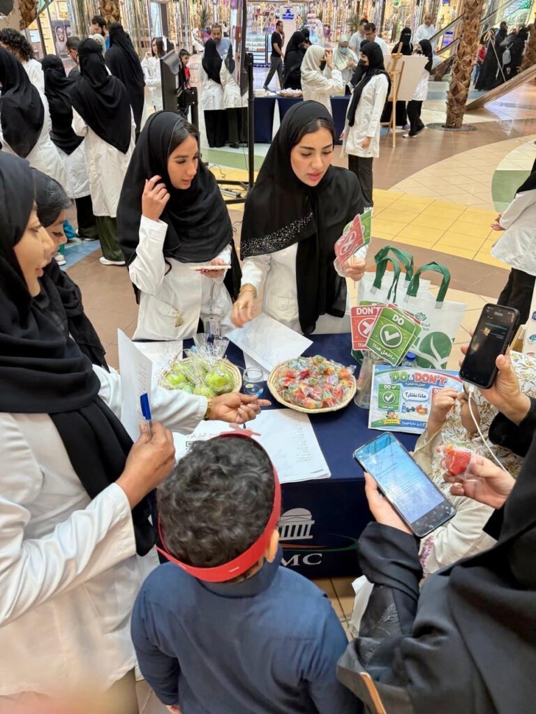 وتضمنت المبادرة أركانًا تفاعلية قدمها مختصون صحيون وطلاب من كليتي الطب والتمريض، شملت الاستشارات الصحية، والإسعافات الأولية، والتوازن الصحي من خلال التغذية السليمة والنشاط البدني، إضافة إلى التوعية بالصحة النفسية وأثرها على جودة الحياة.