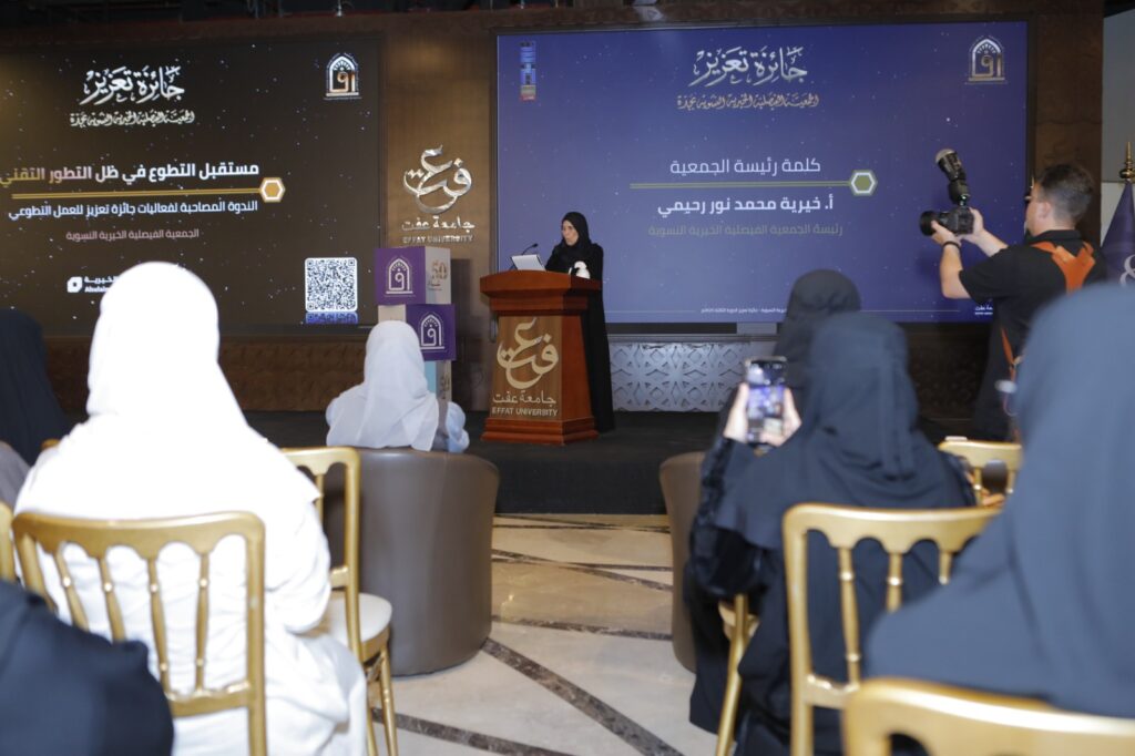 كما أضافت أصبح من الضروري اليوم أن نعيد النظر في مفاهيم العمل التطوعي التقليدية، ونتأمل كيف يمكن أن يستفيد العمل الخيري والمجتمعي من الأدوات التقنية الحديثة، بدءًا من الذكاء الاصطناعي، مرورًا بالمنصات الرقمية، وصولًا إلى البيانات الضخمة والواقع المعزز. إن التقنية لم تعد خيارًا، بل أصبحت واقعًا يتحتم علينا توظيفه في جوانب الخير وخدمة المجتمع.