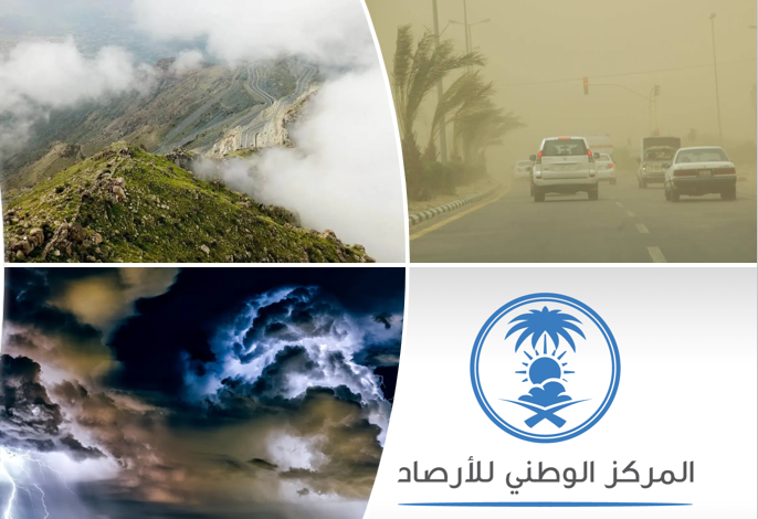 توقّع المركز الوطني للأرصاد في تقريره اليومي، هطول أمطار رعدية متوسطة إلى غزيرة على عدد من مناطق المملكة، قد تؤدي إلى جريان السيول، مصحوبة بزخات من البرد ورياح نشطة مثيرة للأتربة والغبار، وذلك على أجزاء من مناطق مكة المكرمة والمدينة المنورة والرياض والقصيم وحائل، تمتد إلى أجزاء من منطقتي الجوف وتبوك، فيما تكون متوسطة على مناطق الباحة وعسير وجازان، مع فرصة لتكوّن الضباب.
