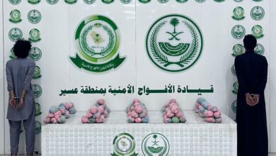 دوريات الأفواج الأمنية بمنطقة عسير تقبض على شخصين لترويجهما (14) كيلو جرامًا من نبات القات المخدر
